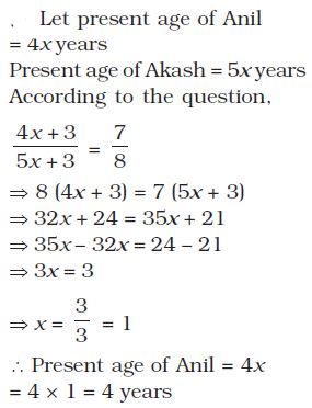 The ratio of present ages of Anil and Aakash is 4 : 5. Three years later their ages will be in ratio 7 : 8. What is the present age (in years) of Anil?