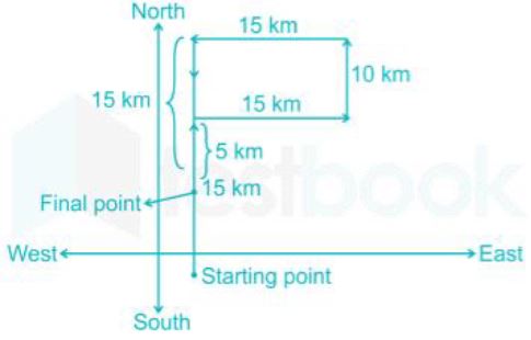 Hence from the figure the distance will be 15 – 5 = 10 km.
