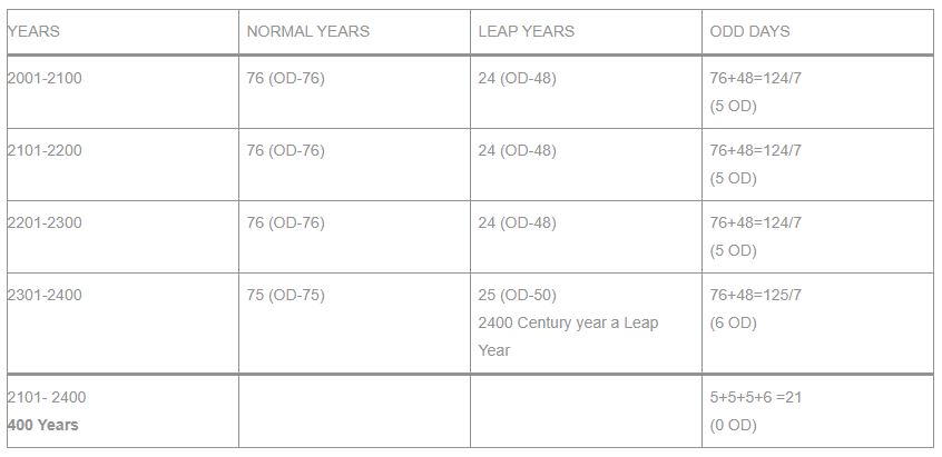 Alternate Method Add the Odd day of years till it become 7 or multiple of 7.