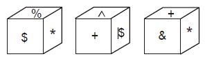 Three positions of a cube are shown below. What will come opposite to face containing ‘$’?