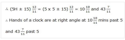 Example: At what time between 5 and 6 O’clock will the hands of a clock be at right angle ?