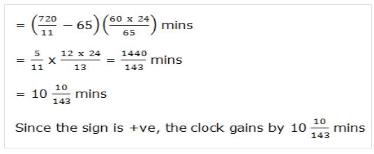 Example: The minute hand of a clock overtakes the hour hand at intervals of 65 mins. How much a day does the clock gain or lose?
