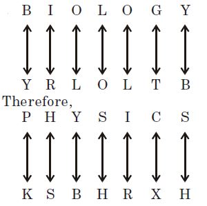 In a certain code language, “BIOLOGY” is written as “YRLOLTB”. How is “PHYSICS” written in that code language?