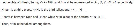 Hitesh, Sunny, Vicky, Nitin and Bharat are arranged in descending order of the height from the top. Hitesh is at third place. Bharat is between Nitin and Hitesh while Nitin is not at the bottom. Who has the maximum height among them?