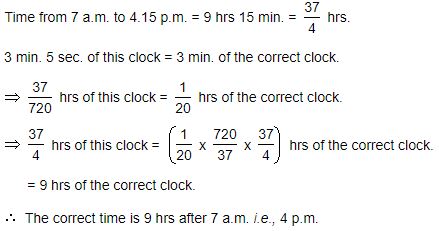 A watch which gains 5 seconds in 3 minutes was set right at 7 a m In the afternoon of the same day w...........