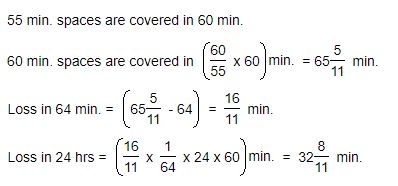 How much does a watch lose per day, if its hands coincide every 64 minutes?