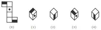 when a cube is formed by folding the sheet shown in fig. (X), then the two half-shaded faces lie opposite to each other and one. of the three blank faces appears opposite to the face bearing a dot. Clearly, each one of the four cubes shown in figures (1), (2), (3) and (4) can be formed by folding the sheet shown in fig. (X).