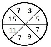 The figure consists of pair of numbers which are opposite to each other related as, 3 × 2 + 1 = 7, 5 × 2 + 1 = 11, 7 × 2 + 1 = 15