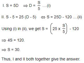 II. Five years ago her age was twenty-five times Deepak's age at that time.