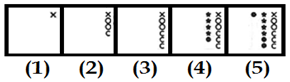 1 cross, 2 circle, 3 half circle, 4 star, 5 black dots then 6 blocks.