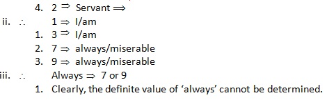 1 2 3 → I am servant … (i) 1. 2 7 9 → servant always miserable … (ii) 2. 6 8 4 → poverty is curse … (iii) 3. From equations (i) and (ii),
