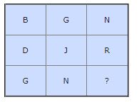 In the following question, a matrix of certain characters is given.These characters follow a certain trend, row-wise or column wise.Find out this trend and choose the missing character accordingly.