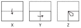 A sheet has been folded in the manner as shown in X, Y and Z respectively and punched. You have to choose from the alterantives how it will look when unfolded.