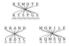 In a certain code language, "REMOTE" is written as "KYSPGS" and "BRAND" is written as "IRDTC". How is "MOBILE" written in that code language?