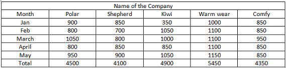 Study the following table carefully and answer the questions given below: Number of bales of wool processed by 5 woolen mills.