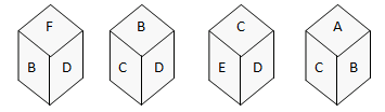 Which face is opposite to face with alphabet B, if four positions are given as below as?