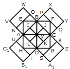 The figure may be labelled as shown. The squares composed of two components each are BJMI, CKMJ, DLMK and AIML i.e. 4 in number. The squares composed of three components each are EBMA, BFCM, MCGD and AMDH i.e. 4 in number. The squares composed of four components each are VWBA, XYCB, ZA1DC and B1C1AD i.e. 4 in number. The squares composed of seven components each are NOJL, PQKI, RSLJ and TUIK i.e. 4 in number. There is only one square i.e. ABCD composed of eight components. There is only one square i.e. EFGH composed of twelve components. Total number of squares in the figure = 4 + 4 + 4 + 4 + 1 + 1 = 18.
