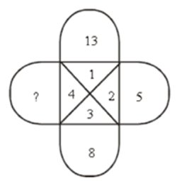 The arrangement is :5 + 3 = 8, 8 + 4 = 12, 12 + 1 = 13. So, the missing number is 12.