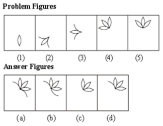 The figure rotates 45ºCW in each step. Also, two halfleaves, one on the CW end and the other on the AC Wend are added to the figure in first, third fifth steps. Hence, option 1 is the correct answer.