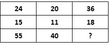 24 20 36 15 11 18 55 40 ? = (24 + 36)/3 = (15 + 18)/3 = (55 + 65)/3