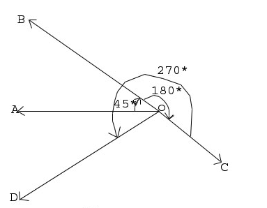 Clock wise45+180=225 Anticlockwise 270 270-225=45 Anti clock wise 45 from West is north west???