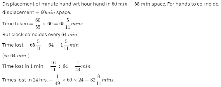 How much does a watch lose per day, if its hands coincide every 64 minutes?