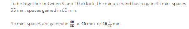 At what time between 9 and 10 o rsquo clock will the hands of a watch be together ........