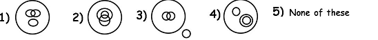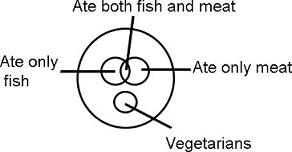 In a dinner party both fish and meat were served. Some took only fish and some only meat. There were some vegetarians who did not accept either. The rest accepted both fish and meat. Which of the following Venn-diagrams correctly reflects this situation?