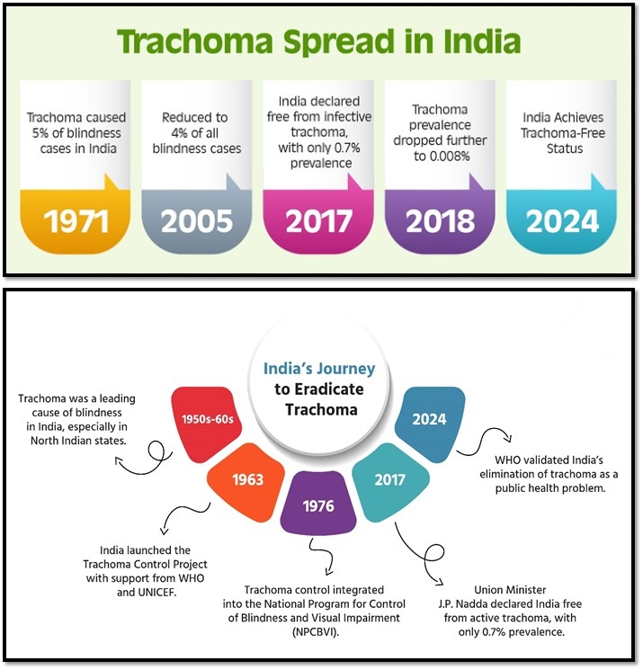 Context: Recently, the World Health Organization (WHO) has officially recognized that India has eliminated trachoma as a public health issue.