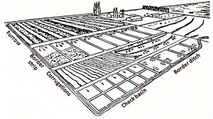 This is the most practiced and beneficial method of orchard irrigation. This method is useful in level fields. Here the channel is prepared in between two plant rows. Small channels are made to connect the circular basins around the plants as in basin system, with the central water channel.