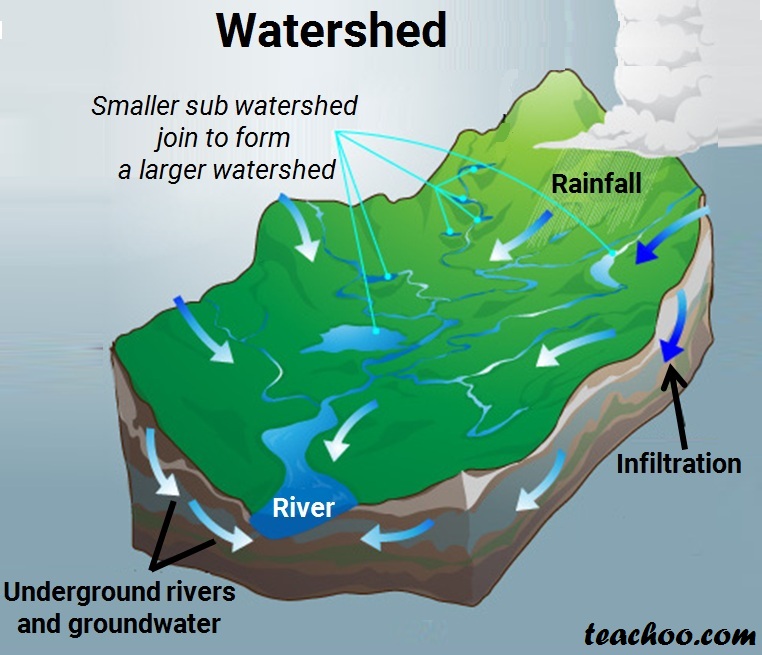 Everybody of water (e.g., rivers, lakes, ponds, streams, and estuaries) has a watershed. The watershed is the area of land that drains or sheds water into a specific receiving waterbody, such as a lake or a river. As rainwater or melted snow runs downhill in the watershed, it collects and transports sediment and other materials and deposits them into the receiving waterbody.