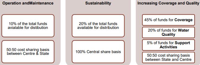 => Introduction of an incentive of 10% of the NRDWP allocation for the States that transfer the management of rural drinking water schemes to the Panchayati Raj Institutions(Rural population managing drinking water supply schemes).