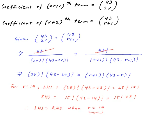 In the expansion of (1 + x)43, if the coefficients of (2r + 1)th and (r + 2)th terms are equal, then what is the value of r(r 1)?