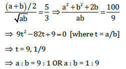 If the ratio of AM to GM of two positive numbers a and b is 5 : 3, then a : b is equal to
