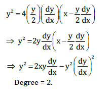 The order and degree of the differential equation y2 4a x ndash a where lsquo a rsquo is an arbitrar...........