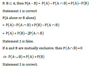 1. P(A occurs but not B) = P(A) – P(B) if B A
