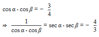 If cos and cos (0 < < < ) are the roots of the quadratic equation 4x2 – 3 = 0, then what is the value of sec x sec ?
