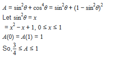 If A = sin2 + cos4 , the for all real , which one of the following is correct?