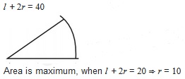 A flower in the form of a sector has been fenced by a wire of 40 m length If the flower bed has the ...........