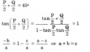 In PQR, R =,if tan and tan() are the roots of the equation ax2+bx+c=0,then which one of the following is correct?