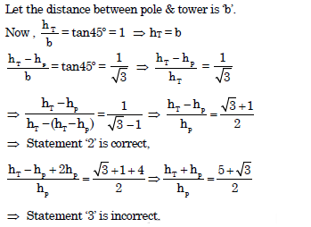 Multiple Choice Questions on The angles of elevation of the top of a tower from the top and foot of a pole are respectively 300 a........... for NDA Exam Preparation