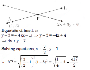 The distance of the point (1, 3) from the line 2x + 3y = 6, measured parallel to the line 4x + y = 4, is