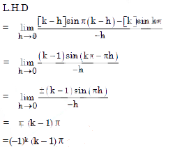 The left-hand derivative of f(x) = [x] sin(πx) at x = k where k is an integer and [x] is the greatest integer function, is