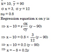 It is given that =10, =90 , = 3, = 12 and rxy =0.8. The regression equation of X on Y is