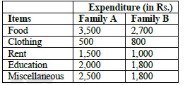 The following table gives the monthly expenditure of two families In constructing a pie diagram to t...........