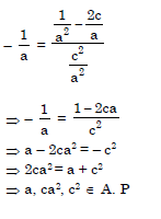The sum of the roots of the equation are in ax2+x+c=0 (where a and c are non-zero) is equal to the sum of the reciprocals of their squares. Then a,ca2,c2 are in