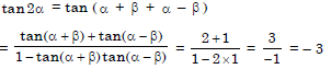 If tan(α−β)=2 and tan(α−β)=1, then tan(2α) is equal to