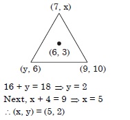 If the centroid of a triangle formed by (7, x), (y, −6) and (9, 10) is (6, 3) , then the values of x and y are respectively