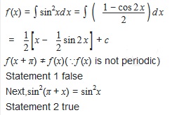 Let f(x) be an indefinite integral of sin2x. Consider the following statements: