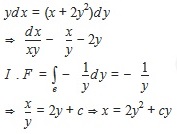 What is general solution of the differential equation ydx-(x+2y2)dy=0